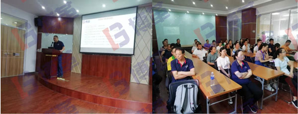 到了博革咨詢師熊老師上臺講話的時刻了。熊老師上臺盡顯博革咨詢師的專業風范,出口成章,語言雖然華麗但不失幽默與實干家的姿態。熊老師上臺為大家講明了6S推進工作的思路和方法。熊老師的發言都是經過博革公司和熊老師多年來的項目經驗和閱歷積淀。相信通過博革的專業指導和員工們的努力。